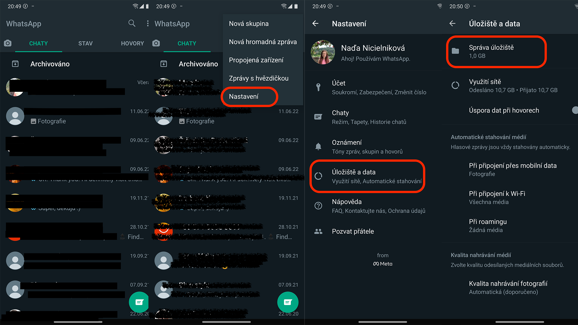 Ano i tyto světově známé a velmi oblíbené aplikace mají svůj Koš. Samozřejmě existují i další skvělé varianty, skrze něž můžete rychle a pohodlně komunikovat s lidmi a sdílet soubory, já jsem ale vybrala WhatsApp a Dropbox. V současnosti posíláme přes tyto „Appy“ a „Boxy“ velké množství dat: ukládáme si do nich prezentace, sdílíme obsáhlá videa a galerie fotografií z našich dovolených. Není divu, že po intenzivním používání se tyto appky rychle zaplní.