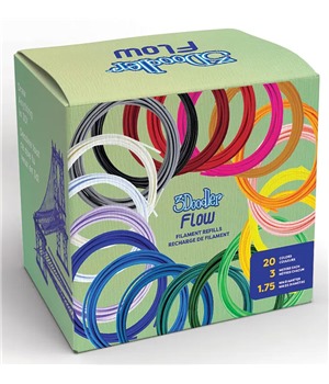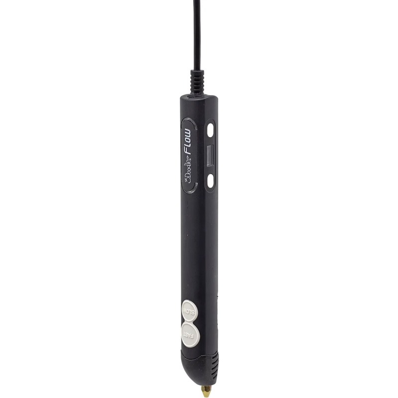 3Doodler FLOW je opatřen pevným hrotem, který se snadno čistí pomocí dodávaného příslušenství. Samotné 3D pero má lehké, leč odolné, plastové tělo. 3Doodler FLOW disponuje zpětným chodem pro vyjmutí filamentu.