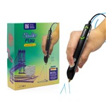 3Doodler FLOW je vybaveno multifunkčním LED indikátorem, který vás upozorní na to, kdy se pero zahřívá (červená barva). Jakmile je 3D pero 3Doodler FLOW připraveno k práci s materiálem PLA/Wood, rozsvítí se zeleně. Když se 3D pero rozsvítí modře, můžete začít pracovat s ABS materiálem. 3Doodler FLOW je napájeno elektrickým adaptérem, přičemž kabel je napevno spojen s perem.