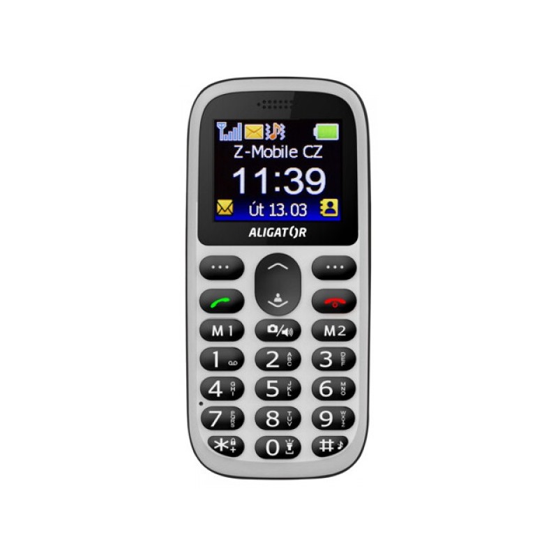 Velký přehledný displej a ergonomicky vyvážený tvar jsou výraznými přednostmi klasicky stavěného telefonu Aligator A510. Výrazná, hmatem dobře rozlišitelná tlačítka napomáhají v ovládání i osobám se sníženou pohyblivostí prstů.