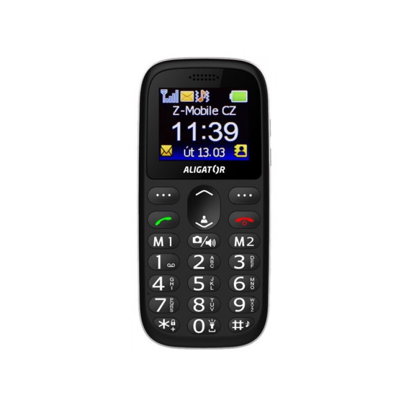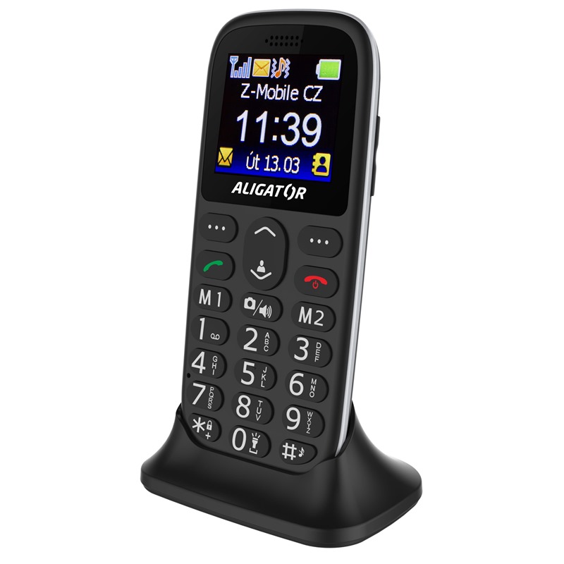 Velký přehledný displej a ergonomicky vyvážený tvar jsou výraznými přednostmi klasicky stavěného telefonu Aligator A510. Výrazná, hmatem dobře rozlišitelná tlačítka napomáhají v ovládání i osobám se sníženou pohyblivostí prstů.