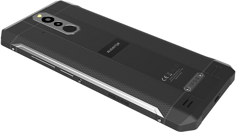 Tělo tohoto telefonního golema se honosí pevným brněním chránícím vnitřnosti před pády a stupněm krytí IP68. To značí, že v prašných prostředích si Aligator ani nezívne a když jinak nedáte, rád si s vámi i zaplave (do hloubky 1.5m a pokud stihnete do půlhodiny vylézt). Před vodou není nutné zakrývat konektory gumovými krytkami jako tomu bývalo u dřívějších iterací voděodolných telefonů. Elegance však na funkčnosti nic neubírá - veprostřed zad telefonu naleznete čtečku otisků prstů pro rychlé a pohodlné avšak vysoce bezpečné odemknutí telefonu, což lze provést i pouhým pohledem díky pokročilé technologii rozpoznání obličeje. Na pravé straně rámečku jsou usazena tlačítka zamknutí telefonu a ovládání hlasitosti, spoušť fotoaparátu na straně levé.