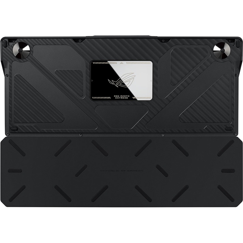 ROG Azoth Extreme se může pochlubit prvotřídní estetikou díky šasi z hliníkové slitiny a kovovému rámu s výrazným vzorem lopatek. Spodní části šasi bylo dosaženo pomocí 12 kroků složitých výrobních procesů, včetně pískování, eloxování, CNC obrábění a dalších. Magnetická noha ROG Azoth Extreme a pruhy a stupně hran vyřezané pomocí CNC frézy. Pruhy a kroky na hranách vyřezané pomocí CNC frézy dále demonstrují závazek k estetice. Spodní část šasi ROG Azoth Extreme se zaměřením na laserem vyrytý, leštěný štítek ROG. Laserem gravírovaný, leštěný štítek ROG je umístěn na spodní straně skříně a dodává složitému designu klávesnice sofistikovaný nádech.