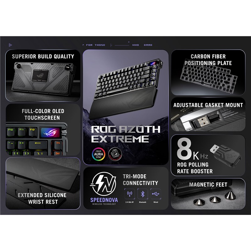 Zažijte nulovou latenci s ROG Polling Rate Booster - exkluzivním příslušenstvím ROG, které zvyšuje frekvenci dotazování klávesnice až na skutečných 8000 Hz v kabelovém i bezdrátovém režimu.