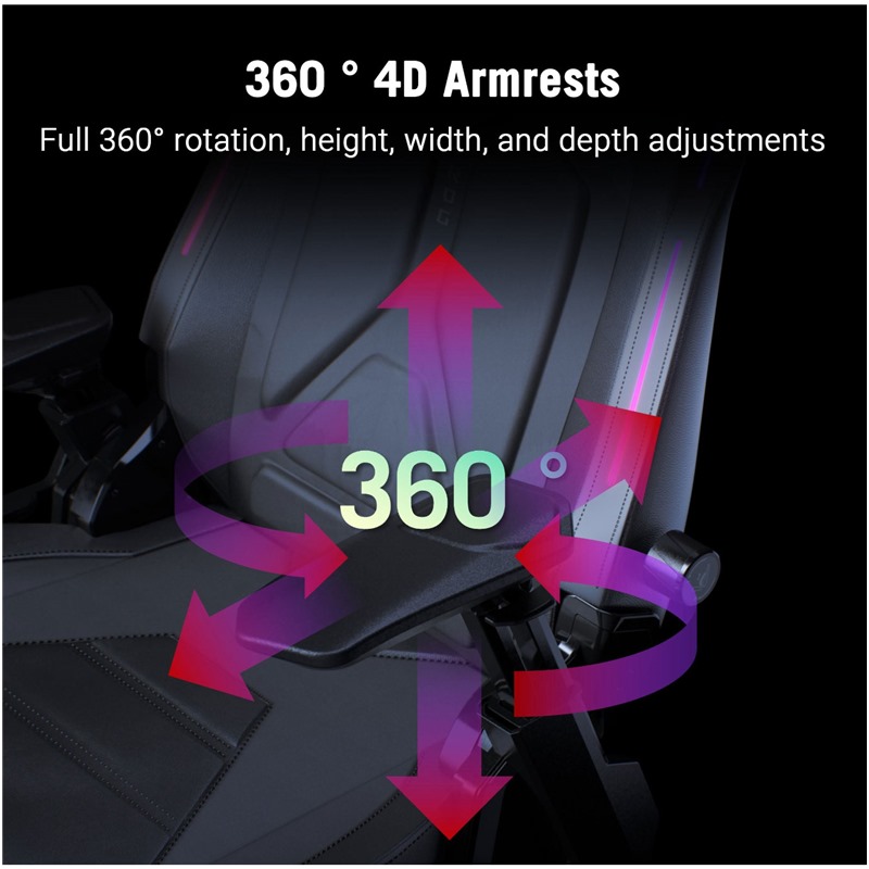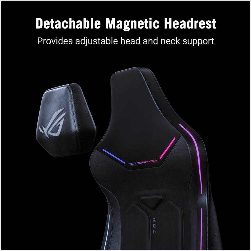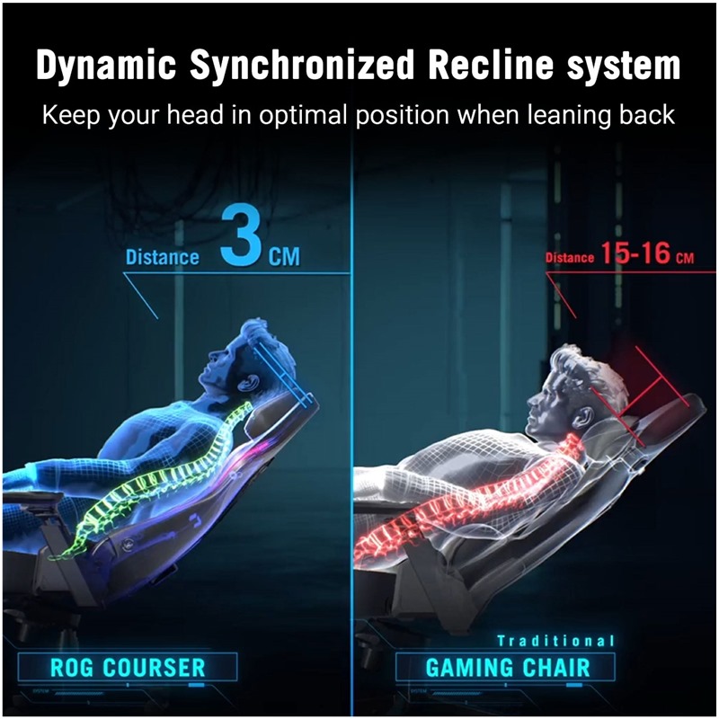 Systém ROG Dynamic Synchronized Recline udržuje hlavu v optimální poloze, když se uživatel nakloní dozadu, čímž eliminuje nepříjemný pocit nataženého zad, který je běžný u tradičních herních židlí.