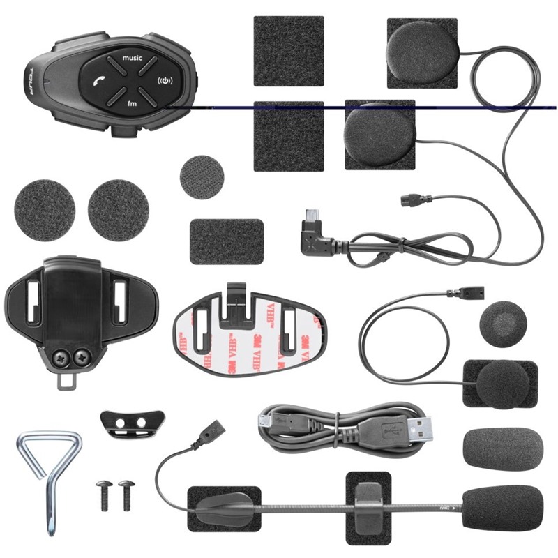 Obsah balení CellularLine Interphone TOUR HD Bluetooth headset pro uzavřené a otevřené přilby Single Pack