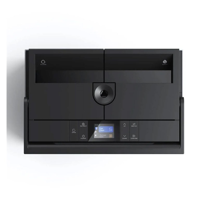 Po každém pracím cyklu můžete spustit režim samočištění stanice. Díky tomuto automatickému režimu zůstane vždy čistá. V režimu samočištění zadní stěrky čisticích disků bezvadně očistí stěny mycí komory. Špinavá voda a nečistoty se shromažďují v utěsněné misce na nečistoty a odvádějí se do nádrže na špinavou vodu. Výsledkem je čistý a svěží interiér stanice, automaticky a bez další námahy.