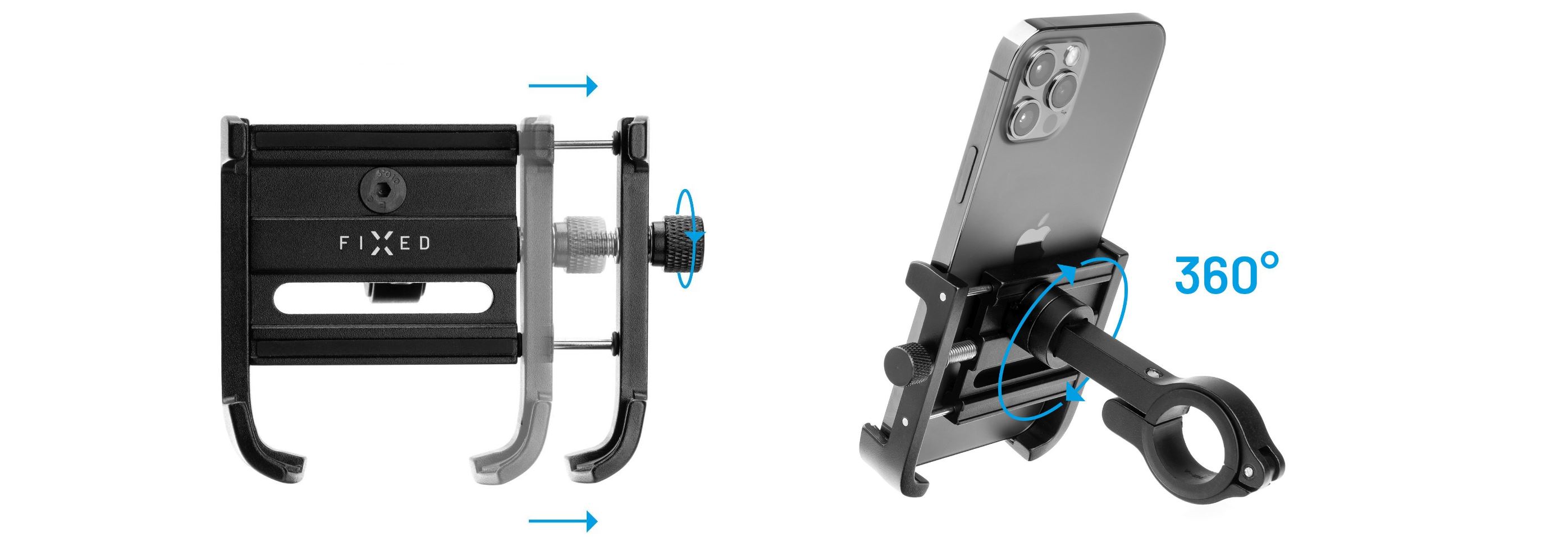 Extra odolný a kvalitní hliníkový držák FIXED Bikee ALU 2 je ideálním doplňkem pro bezpečné používání vašeho telefonu během vyjížďky na kole, motocyklu i skútru. Je určený pro uchycení pomocí jednoduchého a funkčního utahovacího šroubu na řídítka o průměru 22 - 31 mm . Díky univerzálnímu provedení je držák vhodný pro všechny mobilní telefony s úhlopříčkou 4 až 6,7 palce o šířce 5,4 až 10 cm. Kleště držáku zajištěné speciálním šroubovacím systémem, dokonale uchytí a drží telefon bezpečně při jízdě jakýmkoliv terénem. Vnitřní silikonové polstrování zajistí bezpečí telefonu před poškrábáním. Držák Bikee ALU 2 je vyroben z odolné hliníkové slitiny se speciální Anti-UV vrstvou, která dokonale chrání barvu před sluncem a dalšími vnějšími vlivy. Vložený telefon si můžete nastavit o 360° do horizontální i vertikální polohy dle potřeby. S držákem FIXED Bikee ALU 2 vám už nic nebrání sednout na kolo nebo motorku, zapnout v telefonu navigaci, sportovní aplikaci či oblíbený playlist a vyrazit na trať.