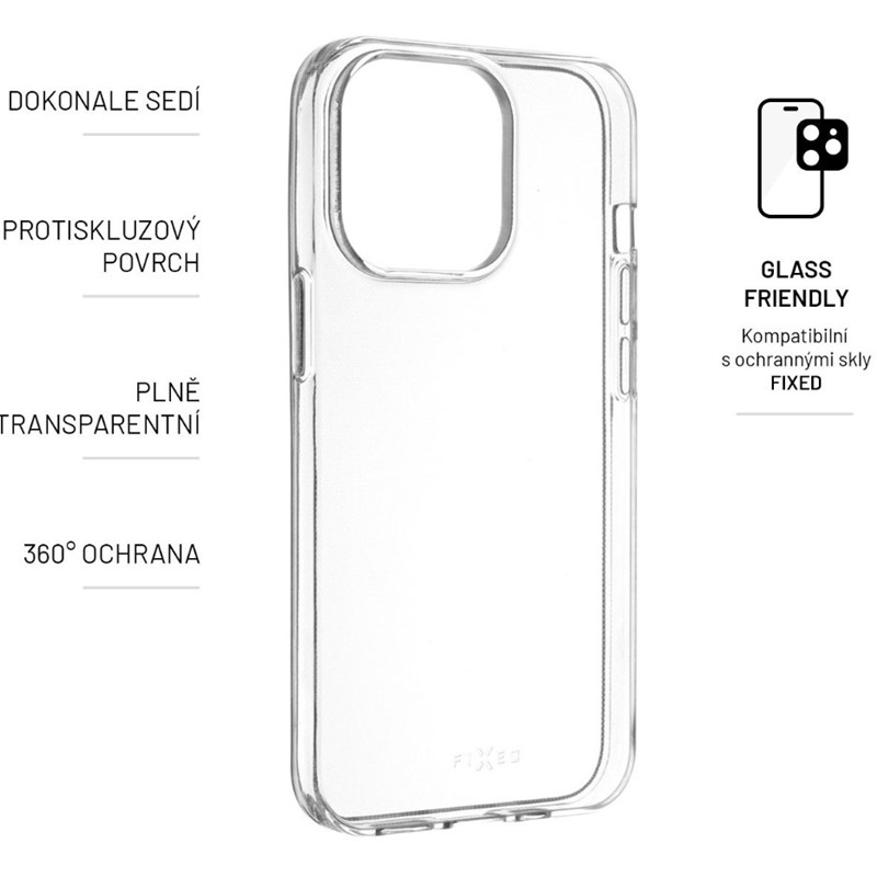 Gelové pouzdro FIXED představuje jednoduchou, ale přesto efektivní ochranu vašeho chytrého telefonu. Je vyrobeno z TPU materiálu, který chrání boky a záda přístroje před poškrabáním, prachem a případnými pády. Plně transparentní provedení nechá vyniknout originálnímu designu vašeho mobilního telefonu. Pouzdro je vyrobeno přesně na míru daného zařízení, nezakrývá nabíjecí ani sluchátkové konektory. Okraje pouzdra lehce přesahují displej a chrání ho tak před poškrábáním, pro maximální ochranu telefonu je však vhodné doplnit pouzdro sklem na displej.
