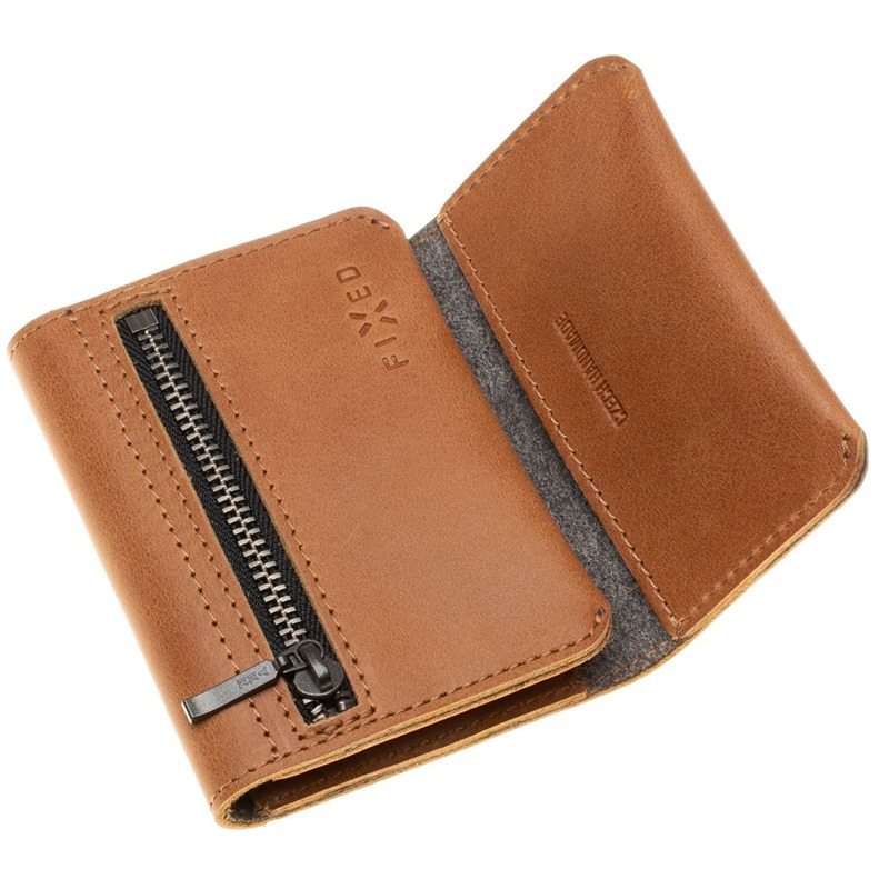 Ručně šitá minimalistická peněženka vyrobená z té nejkvalitnější hovězí kůže, ve které budou vaše doklady, karty i peníze bezpečně pod dohledem moderní technologie. Uvnitř najdete dvě kapsy pro kreditní karty nebo doklady a elastickou přihrádku na bankovky, na vnější straně je kapsa na zip pro drobné mince. Na vnější straně peněženky je připravena kapsička pro chytrý lokátor Apple AirTag.