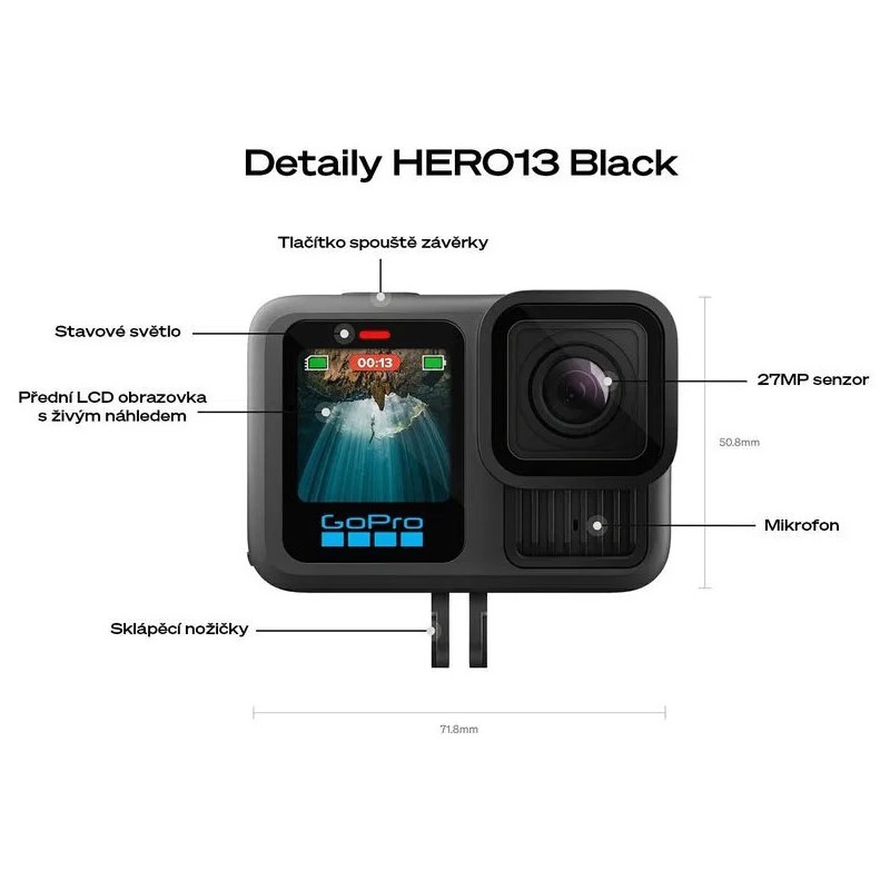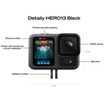 Model HERO13 přináší vylepšený systém uchycení. Kamera je mimořádně flexibilní a přizpůsobí se svým uživatelům. Můžete ji snadno upevnit na různé povrchy, ať už ji potřebujete mít v ruce, na batohu, na kole, na čele, nebo třeba na řídítkách.