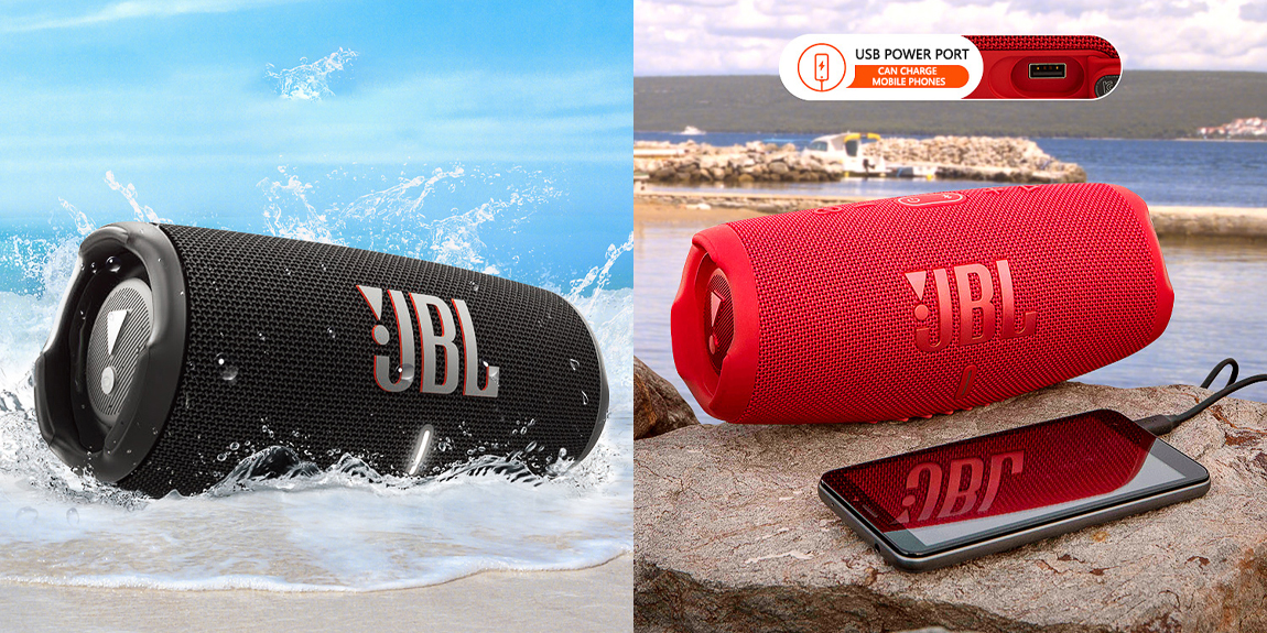 Nedokážete si bez hudby představit svůj život a chcete ji mít všude s sebou a užít si poslech i s přáteli? Ideálním společníkem pro tyto chvíle je Bluetooth reproduktor JBL Charge 5. Jeho válcovité tělo odolá vodě i prachu na základě třídy IP67. JBL Charge 5 disponuje 40W výkonem. Optimalizovaný měnič s dlouhou výchylkou, samostatný výškový reproduktor a dva pasivní basové zářiče vám dají na vlastní kůži poznat, jak zní zvuk JBL Original Pro Sound.