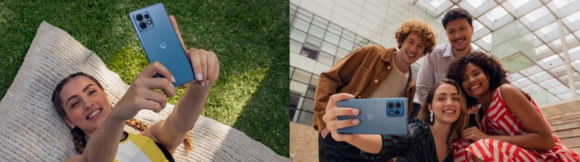 Vynikající zadní optika Motoroly Edge 40 Pro zdatně využívá scény-rozpoznávající umělé inteligence pro dechberoucí snímky. Hlavní 50 Mpx čočka s optickou stabilizací je zárukou snímků plných dechberoucích detailů, druhá 50 Mpx Vám umožňuje ultraširoký 114stupňový úhel pohledu i přesný opak v podobě makra a poslední 12 Mpx portrétní teleobjektiv slouží k zachycení přiroezené krásy Vašich kamarádů. Kombinace je to neskutečná - i díky pomalu nebeské světelnosti čoček budou vaše snímky barevnější a plné detailů, a to nezávisle na denní době.