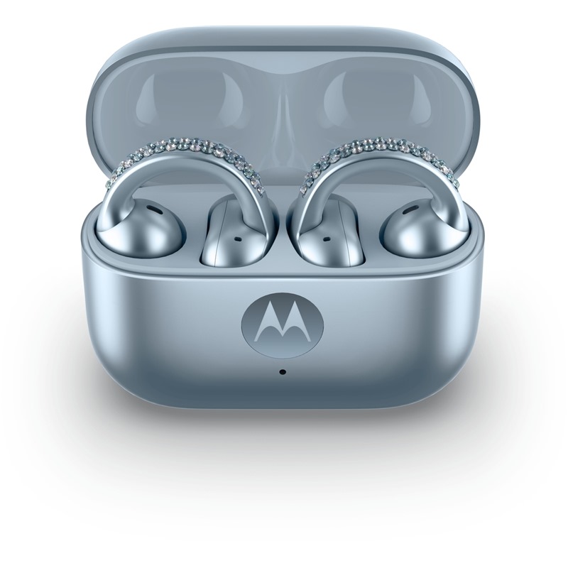 A když už jsme u toho balení, nelze nezmínit jeho zásadní součást, kterou jinde opravdu nenajdete - telefonu uvnitř sousedí i sluchátka! A nejde o žádné laciné kabelové špunty, nýbrž o esteticky vytříbenou verzi Moto Buds Loop, v totožné Swarovski edici!