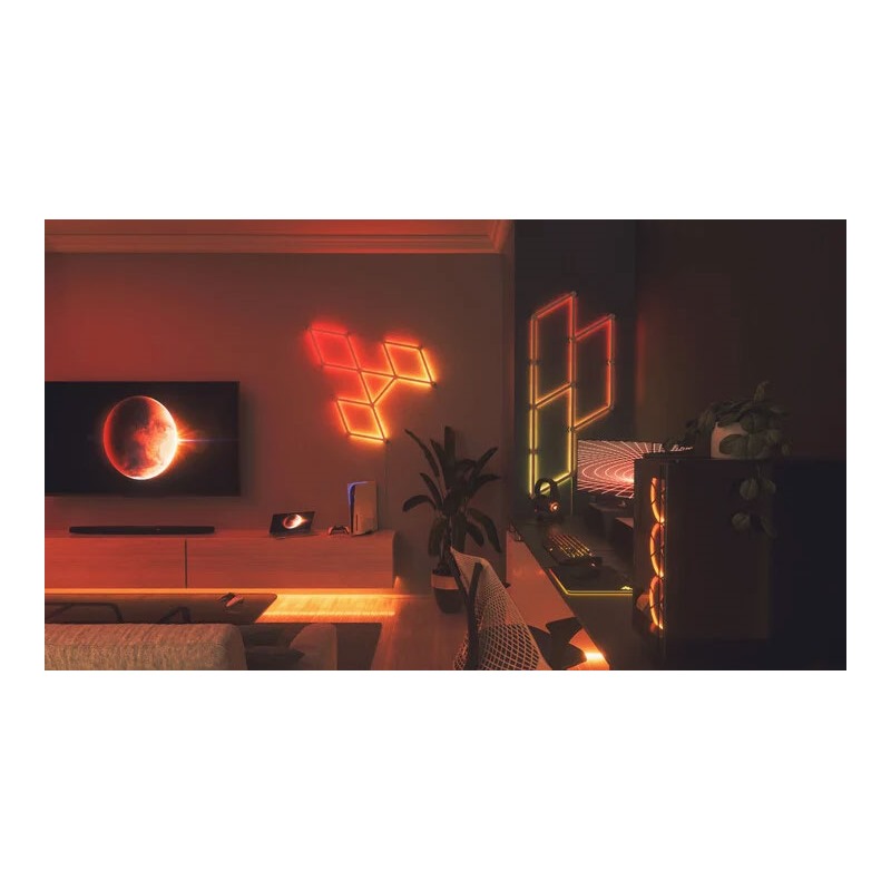 Svá světla můžete jednoduše ovládat také přes nainstalovanou aplikaci v mobilním telefonu. Zapínat a vypínat, ovládat jas, seskupovat světla v domácnosti a místnosti, vytvářet nebo stahovat scény nebo ovládat všechna světla v místnosti společně. Prozkoumejte nekonečné množství způsobů, jak může chytré osvětlení podpořit váš chytřejší život. Vymyslete si jakýkoliv tvar a jednoduše jej složte z těchto světelných panelů. Výsledkem je unikátní osvětlení, kdekoliv u vás doma. K dispozici budete mít až 16 milionů barev a různé světelné scény, kterých je celkem 19. Vytvořit si můžete i své vlastní.