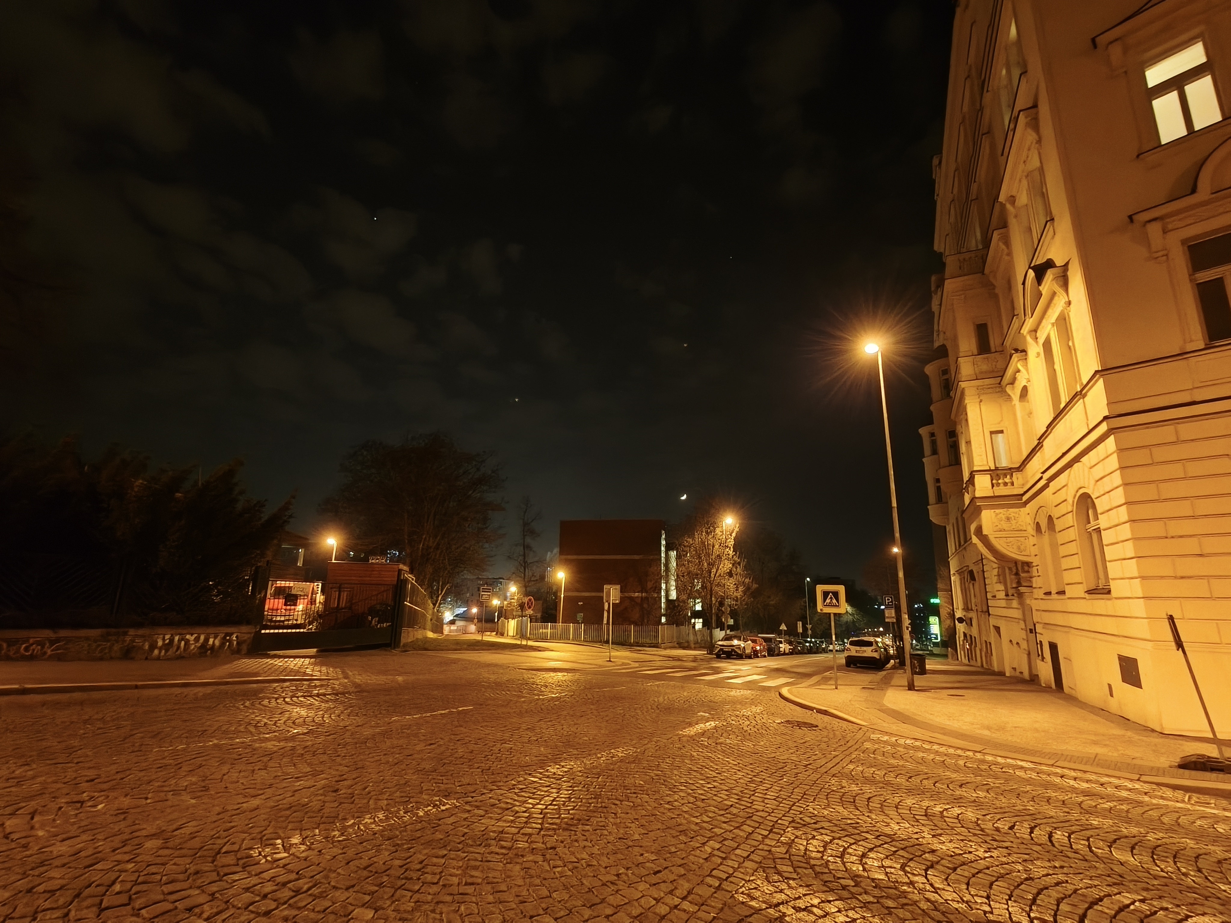 V noci si hlavní snímač vede solidně. Fotky si zachovávají rozumnou ostrost a líbí se mi, že software do nočních scén nezasahuje zbytečně agresivně a nesnaží se extrémně vyrovnávat chyby. Překvapilo mě i „šíro“. V úplné tmě logicky selhává, ale jakmile je ve scéně alespoň trocha pouličního osvětlení, fotky vypadají nadprůměrně dobře. Teleobjektiv je na tom v noci ještě o chlup lépe. Při jeho nativním ohnisku dostanete velmi dobré výsledky, jen dvojnásobnému výřezu se radši vyhněte.