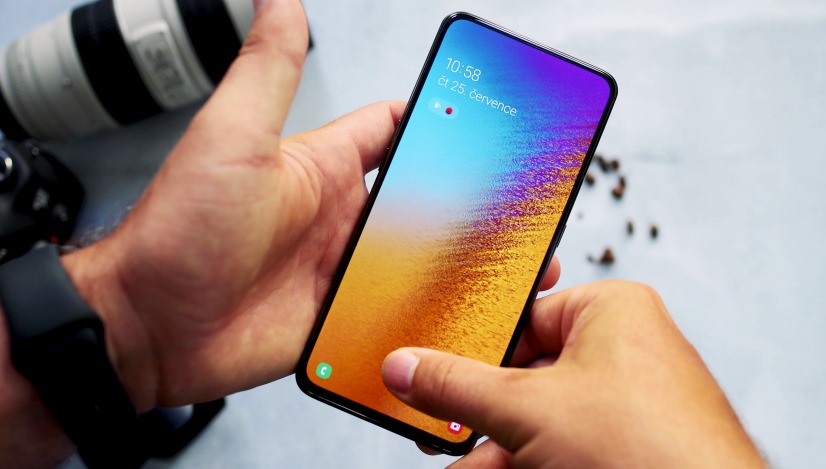 Dokonce i tak, že zde nenajdete žádný notch ani průstřel, který by kazily dojem z čelní strany. O selfie fotky přední kamerou však ale nezůstanete ochuzeni, protože stačí v aplikaci foťáku přední kameru aktivovat a hned se rozběhnou motorky, které vysunou zadní část směrem vzhůru a kameru otočí pro pořízení selfiečka. Samozřejmě toto nějakou dobu trvá, a proto Galaxy A80 nepodporuje odemykání obličejem. Místo toho můžete využít čtečku otisků prstů v displeji, která je vcelku spolehlivá, ale na rychlosti by mohla ještě trochu přidat.