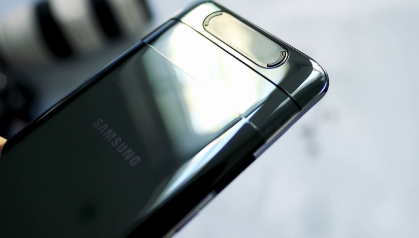Samsung Galaxy A80 je co do velikosti obr a ještě pár let zpátky by tento telefon byl bez problému zařazen do kategorie tabletů. Rozměrově jsou na tom dost podobně s Galaxy A70, avšak A80 je nepatrně silnější, vyrobena z opravdu prémiových materiálů, kterými jsou hliníkové tělo, displej kryje Gorilla Glass 3 a zadní stranu naopak Gorilla Glass 6, což dává telefonu váhu mohutných 220g.