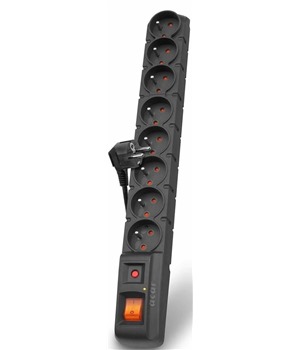 Popis produktu PremiumCord Acar S8 prodlužovací kabel s přepěťovou ochranou 5m 8x zásuvka černý