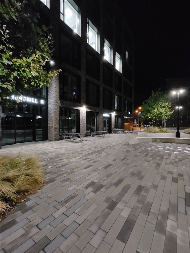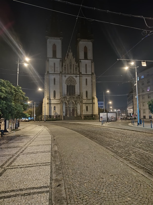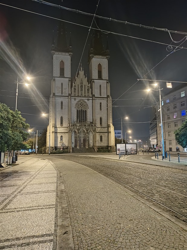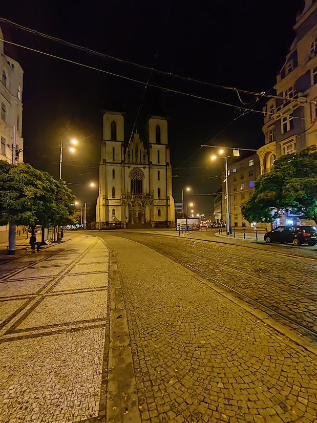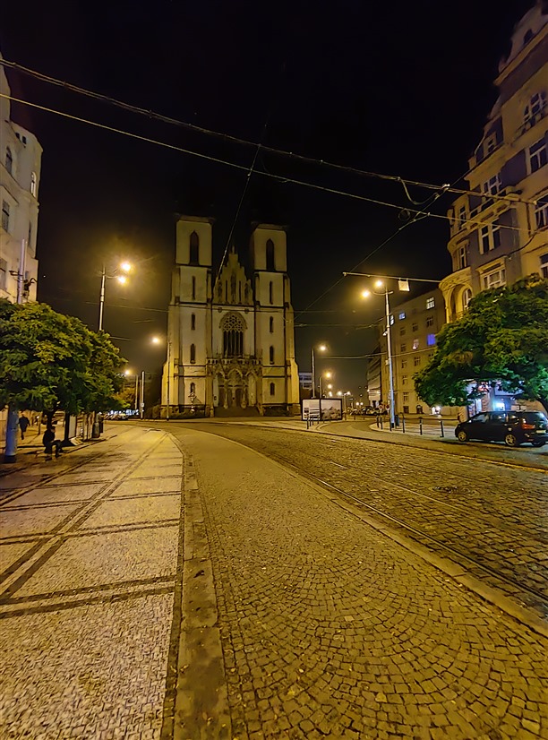 Začnu nočními fotkami, kde se na širokoúhlém foťáku Motorola na Samsung úplně moc nechytá. U hlavního foťáku už je to o poznání lepší, ale zatímco Samsung si drží barevnou konzistenci mezi oběma foťáky, Motorola má problém s typickým žlutým pouličním osvětlením a celou scénu totálně desaturuje. Zajímavé je, že se tak děje jen na hlavním a ne na šíru.