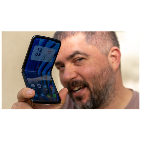 Uf, doufám, že mě za přirovnání v dnešní hyperkorektní době nikdo neukamenuje. Jen ovšem nutno podotknout, že Jeep s trochu ucházející pneumatikou. Je totiž vidět ohromný rozdíl v samotné kvalitě kloubu, kdy Samsung jako lídr v ohebných telefonech, má za sebou desítky milionů prodaných kusů a posbíraných zpětných vazeb zákazníků oproti Motorole, kde by chtělo na kloubu ještě celkem zapracovat. Ve flex režimu nepůsobí zrovna pevným dojmem. Na druhou stranu navrch má Razr u vnějšího displeje, jeho 2.7" je mnohem větších než u Flipu, a tak typická gesta na vnějším displeji jako zavolání oblíbených kontaktů, ovládání foťáků a s tím spojeného mnohem většího náhledu při selfíčkách je prostě mnohem lepší.