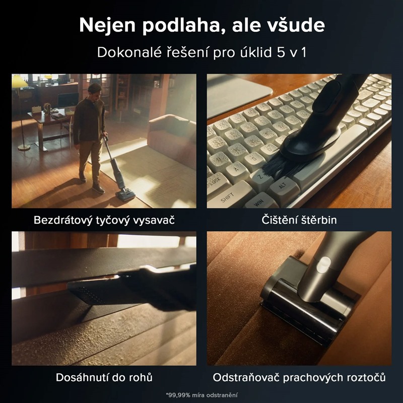 Vysavač na mokré i suché vysávání: Snadno uklidíte jak mokrý, tak suchý nepořádek:Bezdrátový tyčový vysavač: Odstraňujte prach pomocí silného bezztrátového sání :Odstraňovač prachových roztočů: Precizní řešení při problémech s prachovými roztoči >Úklid štěrbin: Štěrbinový kartáč určený na úklid v mezerách v nábytku a okenních škvírách