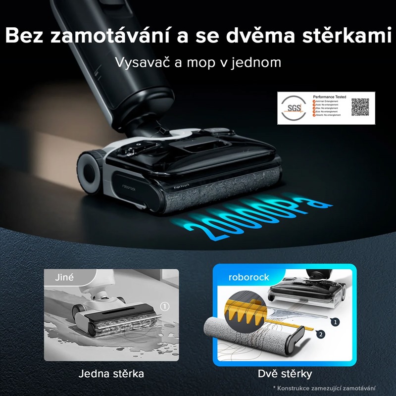 Mějte perfektně čisté podlahy bez skvrn od vody díky nezaplétajícímu se kartáči – stěrka s neustálým přítlakem zabraňuje tvorbě šmouh, zpětné čepele zachycují chlupy a výsledkem je hladký a čistý povrch.