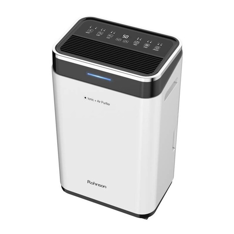 Odvlhčovač Rohnson R-9575 Ionic + Air Purifier vám pomůže v boji proti vlhkosti ve vaší domácnosti. Je vhodný do prostor do 120 m2, díky čemuž jej můžete použít i v kancelářích a dalších nebytových prostorech. Výkon odvlhčování dosahuje 20 litrů vody za den. Veškerý kondenzát se shromažďuje do 6,5l zásobníku, který lze v případě potřeby snadno vyprázdnit. O jeho naplnění vás bude informovat světelná indikace.