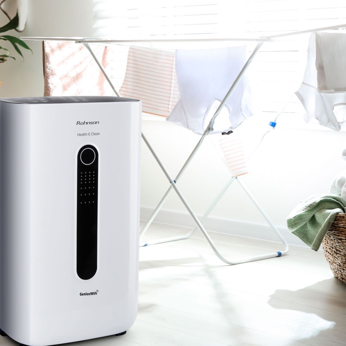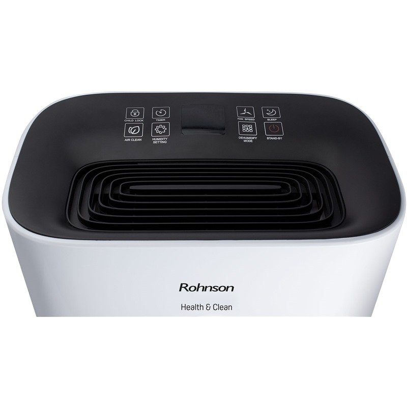 Rohnson R-9920 Genius Wi-Fi Health & Clean má spoustu užitečných funkcí. Nastavit si můžete časovač až na 24 hodin. Systém TURBO využijete při sušení prádla v domácnosti. Odvlhčovač pracuje s automatickým systémem proti zamrznutí Anti-frost a technologií vnitřního vysoušení. Tento model odvlhčovače lze připojit k aplikaci a ovládat jej ze svého mobilu. Pro usnadnění manipulace a slouží rukojeť a kolečka a rodiče s dětmi určitě ocení funkci dětského zámku.