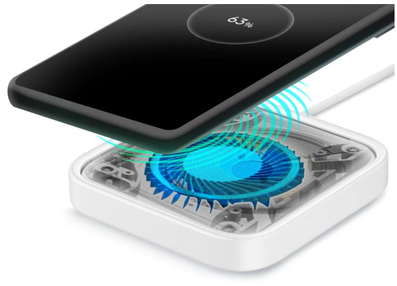 Bezdrátová nabíjecí podložka má vestavěný chladicí systém s ventilátorem a nabije váš telefon ještě rychleji s menší spotřebou energie v porovnání s konkurenčními produkty.