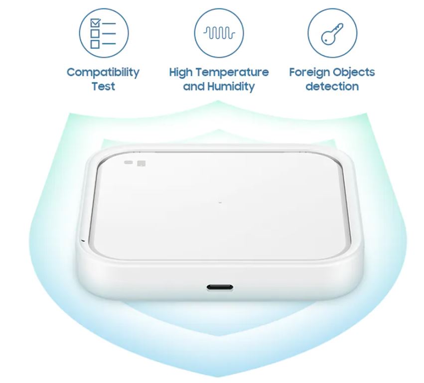 15W nabíječka je tou nejlepší volbou, která ochrání vaše zařízení Galaxy před vysokými teplotami, vlhkostí, nebo před přehřátím během nabíjení. Automaticky rovněž zjistí, když nabíjení naruší jiné objekty a zároveň je testována tak, aby byla zajištěna plná kompatibilita zařízení Galaxy.