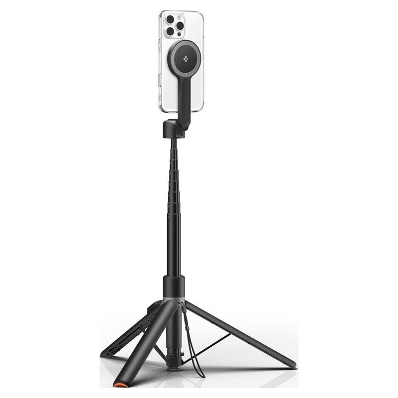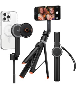 Spigen Tripod Selfie Stick S581W je chytré příslušenství pro každého, kdo chce pořizovat stabilní fotografie, videa nebo skupinové snímky bez kompromisů. Kombinuje teleskopickou selfie tyč, stabilní tripod a magnetické MagSafe uchycení, díky kterému telefon jednoduše přicvaknete na místo, bez složitého nastavování držáků.