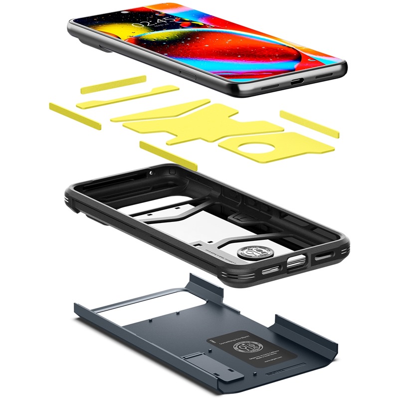 Originální Spigen odolný zadní kryt s vyvýšeným rámečkem z polykarbonátu, polyuretanovými zády a odolnost podtrhující pěnovou výplní dokonale chrání vaše zařízení před poškrábáním a pády a zároveň krásně sedí v ruce.