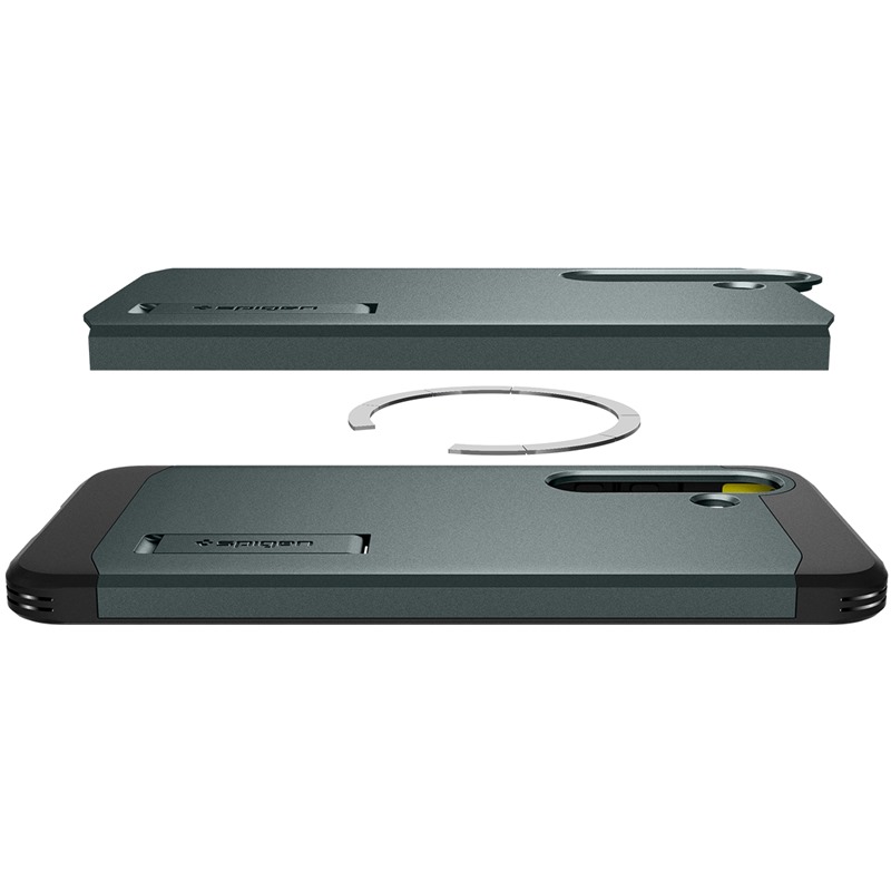 Popis produktu Spigen Tough Armor odolný zadní kryt s podporou MagSafe pro Samsung Galaxy S25 zelený