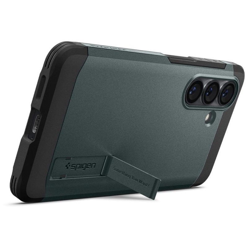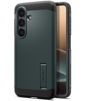 Popis produktu Spigen Tough Armor odolný zadní kryt se stojánkem a podporou MagSafe pro Samsung Galaxy S26 zelený
