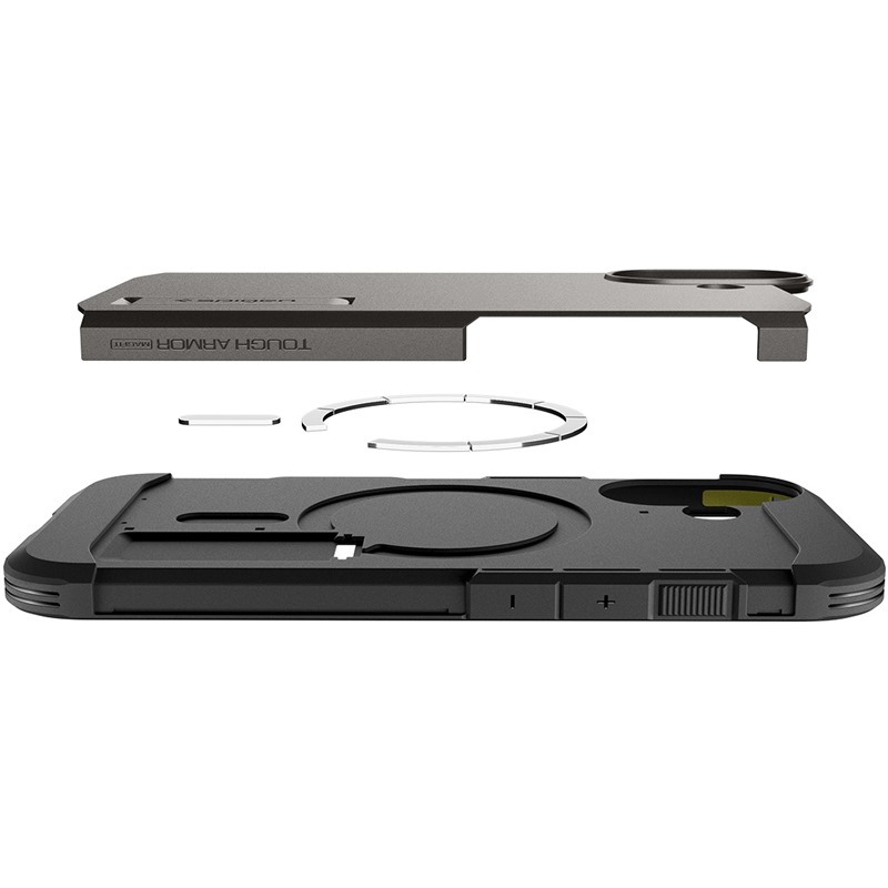 Originální Spigen odolný zadní kryt s vyvýšeným rámečkem z polykarbonátu, polyuretanovými zády a odolnost podtrhující pěnovou výplní, o jejíž nejideálnějším rozložení uvnitř krytu rozhodla umělá inteligence dokonale chrání vaše zařízení před poškrábáním a pády a zároveň krásně sedí v ruce.