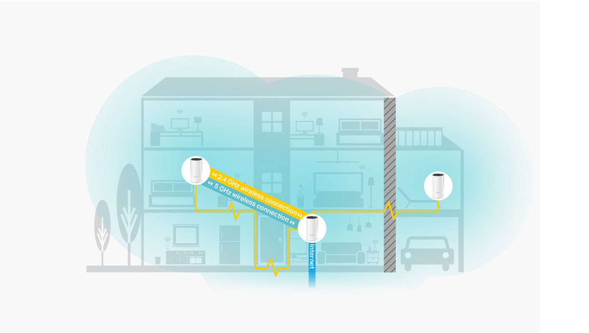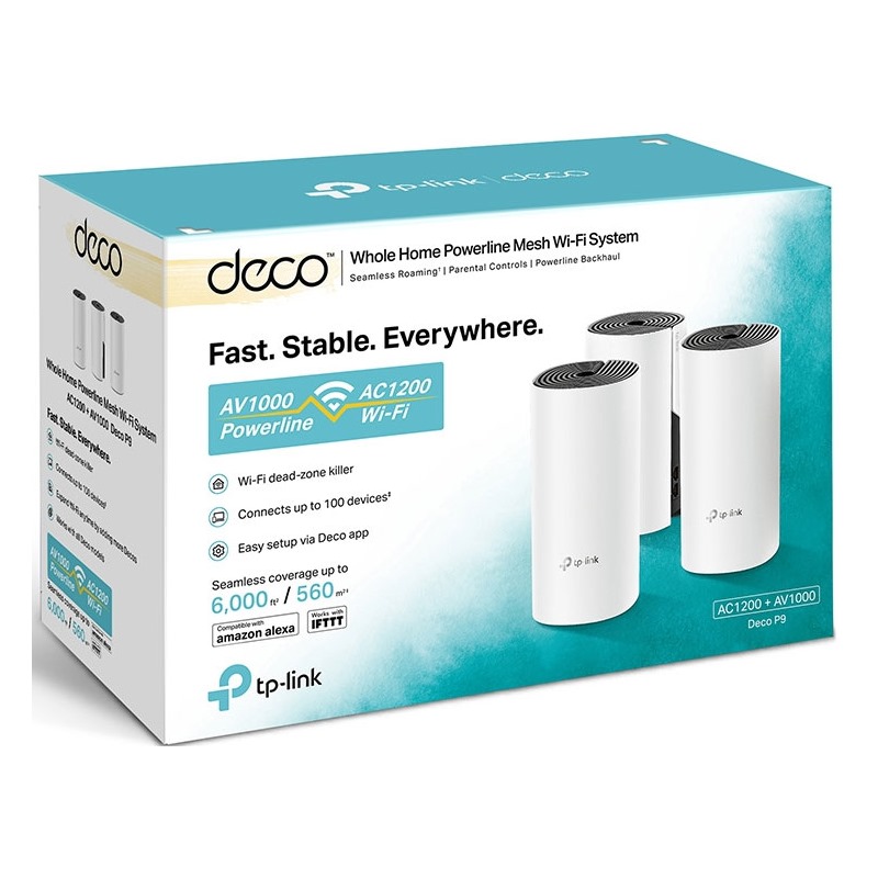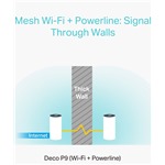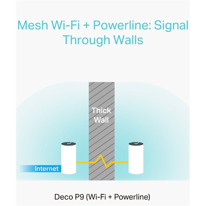 Deco P9 kombinuje duální Wi-Fi a powerline pro vytvoření silnější mesh sítě. Technologie Powerline využívá elektrické rozvody vašeho domu k vytvoření silnějšího propojení mezi jednotkami Deco tím, že snižuje dopad stěn a jiných překážek na signál a poskytuje ještě vyšší rychlosti sítě a skutečně bezproblémové pokrytí. Powerline a bezdrátové připojení spolupracují při přenosu dat mezi jednotkami Deco. Celková rychlost sítě je ve srovnání s používáním Wi-Fi výrazně zlepšena.