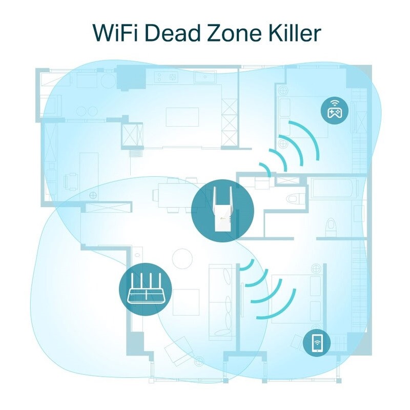 Jeden router má omezené pokrytí Wi-Fi a vždy vytváři mrtvé zóny Wi-Fi. RE605X se bezdrátově připojuje k vašemu stávajícímu routeru a zesiluje více signálů Wi-Fi v celém domě, což vám umožní vychutnat si plynulé zážitky v síti Wi-Fi 6 všude s velkou rychlostí, kapacitou a pokrytím.