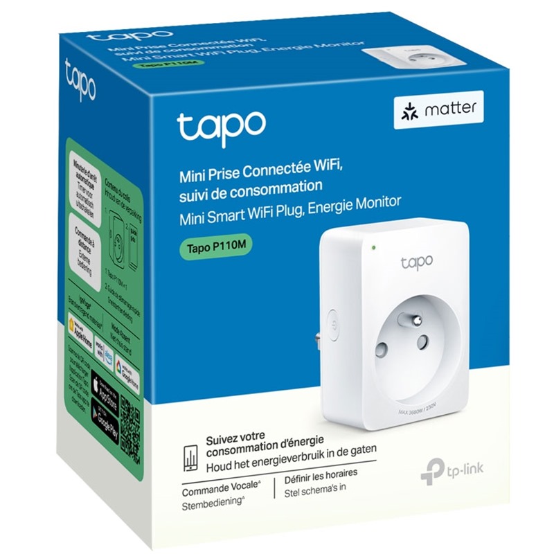 Tapo nabízí uživatelům několik možností, jak zjednodušit konfiguraci. Prostřednictvím Bluetooth mohou chytrou zásuvku snadno propojit s aplikací Tapo. Zásuvku Tapo P110M lze nastavit také naskenováním přiloženého kódu pomocí libovolné aplikace kompatibilní se standardem Matter, například Alexa, Google Home nebo Apple Home.