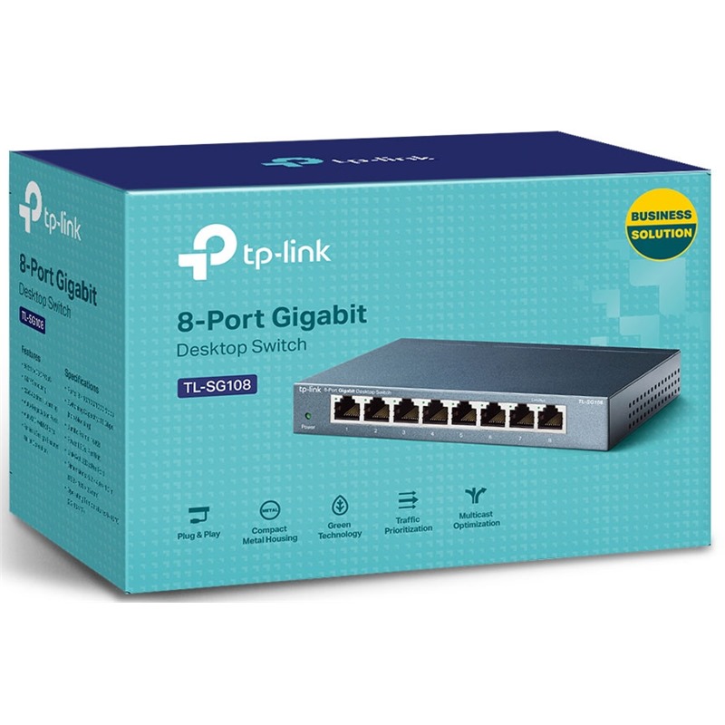 Stolní switch TL-SG108 představuje snadný způsob, jak zvýšit rychlost vašeho síťového serveru a páteřních připojení. Ať pracujete z domu nebo z kanceláře, switch TL-SG108 vám pomůže rychle a snadno splnit pracovní úkoly.