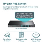 Vyhovuje standardu 802.3af/at PoE+, který podporuje až 30 W na každém portu PoE. Celkový rozpočet napájení 250 W PoE* pro 16 gigabitových portů PoE+ umožňuje široké možnosti využití, například pro dohledové systémy pro kanceláře, studentské koleje a malé firmy. Je plně kompatibilní s IP kamerami, přístupovými body, IP telefony, počítači, tiskárnami a dalšími zařízeními.