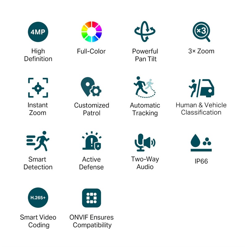 Spolehlivě pokryjte každý kout s kamerou VIGI s funkcí otáčení a naklápění (pan & tilt). Přizpůsobitelné trasy sledování (funkce patrol) nabízejí promyšlenější a rychlejší možnosti sledování klíčových oblastí (až 8 bodů pro každou trasu).