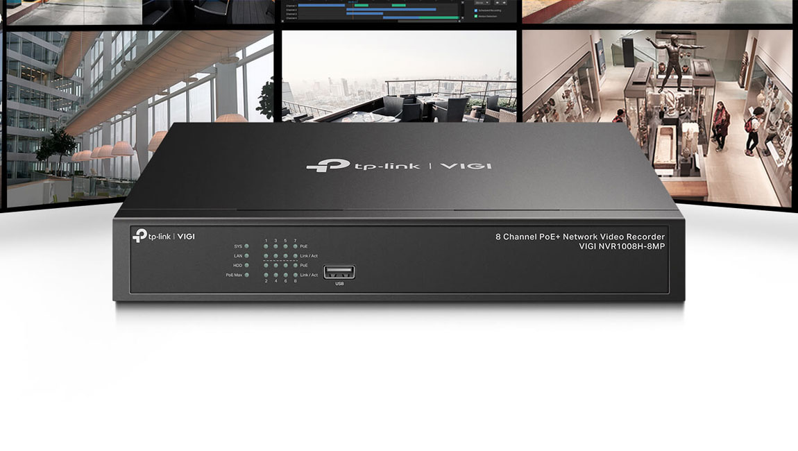 Přehrávejte záznam až z 8 kamer současně, zvyšte rychlost přehrávání a vyhledejte události v rozvrhu videa, abyste si mohli snadno prohlédnout záznam. Vyhrazená aplikace VIGI, webové uživatelské rozhraní a VIGI Security Manager umožňují vzdálené monitorování, což poskytuje snadnost a pohodlí. Uloží až 10 TB záznamů ze spravovaných kamer pro zabezpečení vašich dat pro rychlý a pohodlný přístup.