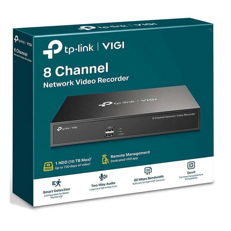 Díky podpoře hlasového interkomu můžete vést obousměrnou konverzaci a zároveň sledovat svůj kanál odkudkoli. Vhodné pro management. Na pevný disk SATA lze uložit až 10 TB (720 dní videa), takže vaše data jsou bezpečně uložena lokálně. Díky ONVIF kompatibilitě můžete snadno přidat IP kamery od VIGI a jiných značek a vytvořit tak výkonnou a rozmanitou síť.