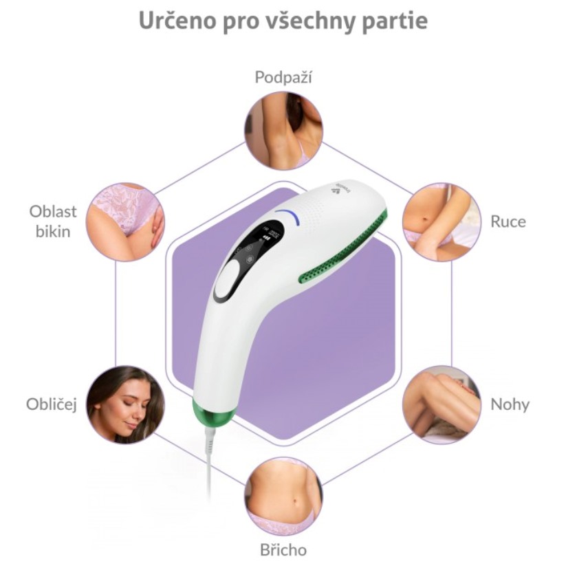 Epilace je prováděna pomocí intenzivního pulzního světla. Epilátor vydává jemné impulzy světla pod povrch pokožky, kde zasahuje melanin ve folikulu chloupku a pomáhá tak přerušit cyklus dorůstání chloupků. Světelné impulzy vytvářejí teplo, které vlasovou cibulku zahřeje, ta se zničí a chloupky poté samovolně vypadávají. Pokožka je již po několika málo použitích výrazně hladší. Epilace všech partií vám zabere jen pár minut.