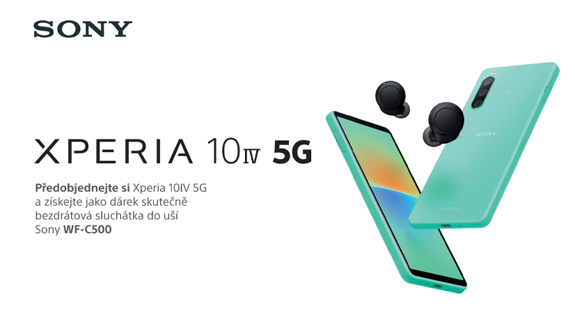 ℹ️ Pokud chcete vlastnit lehký mobil se slušnou výbavou, můžete si Sony Xperia 10 IV 5G už nyní předobjednat za 12 490 Kč. V rámci časově omezených předobjednávek dostanete k telefonu zdarma bezdrátová sluchátka Sony WF-C500 v hodnotě 1 690 Kč.