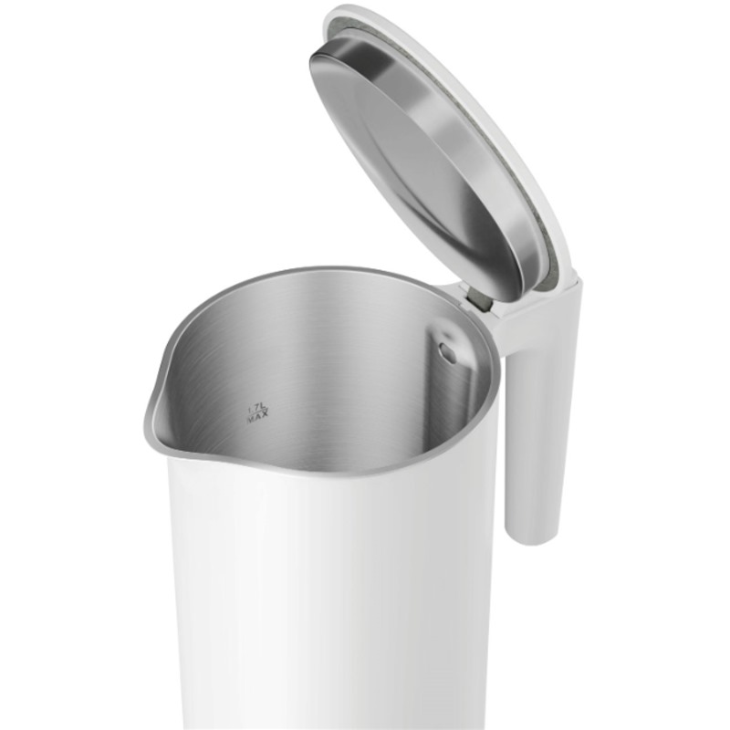Příprava většího množství horkých nápojů bez doplňování. V jedné konvici lze uvařit 8 šálků vody, což stačí pro potřeby celé rodiny. Konvice má zaoblený tvar pro ještě snažší čištění, bezproblémový provoz. Jednoduchá konstrukce bez spár a sítka, která nezanechává skvrny od vodního kamene a má velký průměr pro snadnější čištění.